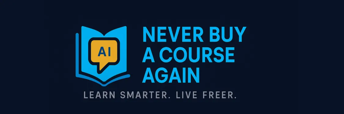 Fair Use Notice: “Never Buy a Course Again” is a creative title expressing empowerment and self-education through AI.